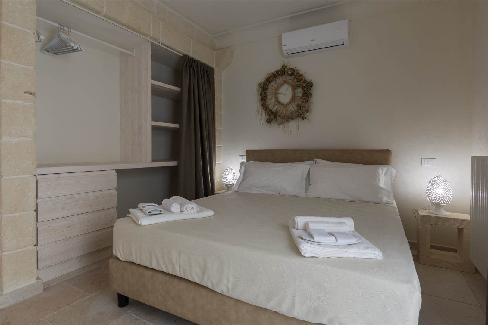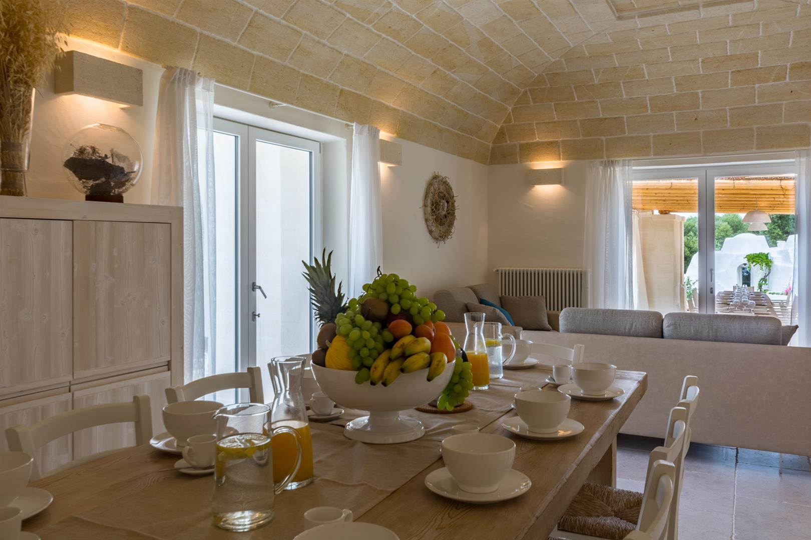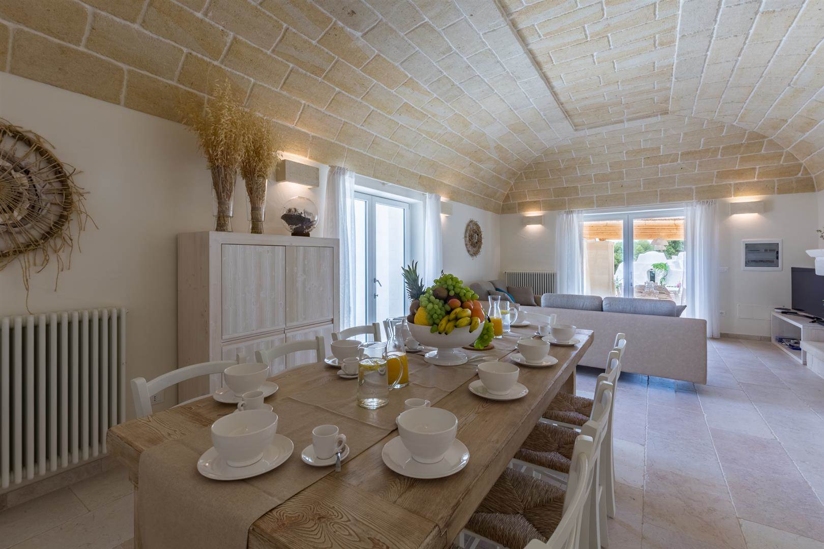 La zona della trullo è assolutamente affascinante, essendo leggermente separata dalla costruzione principale, ha un tocco di privacy in più, ideale per una giovane coppia che vuole godersi le vacanze in libertà.