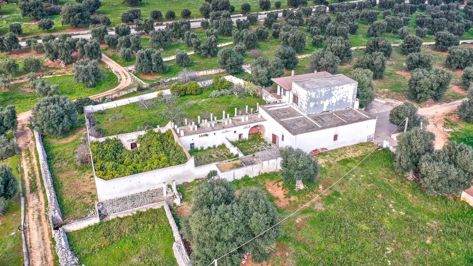 La struttura della masseria è in buone condizioni e necessita di un restyling per adeguare gli impianti e gli spazi alle necessità della vita contemporanea, in ogni caso la struttura è dotata di impianto di riscaldamento, condizionatori, cisterne e forno a legna.