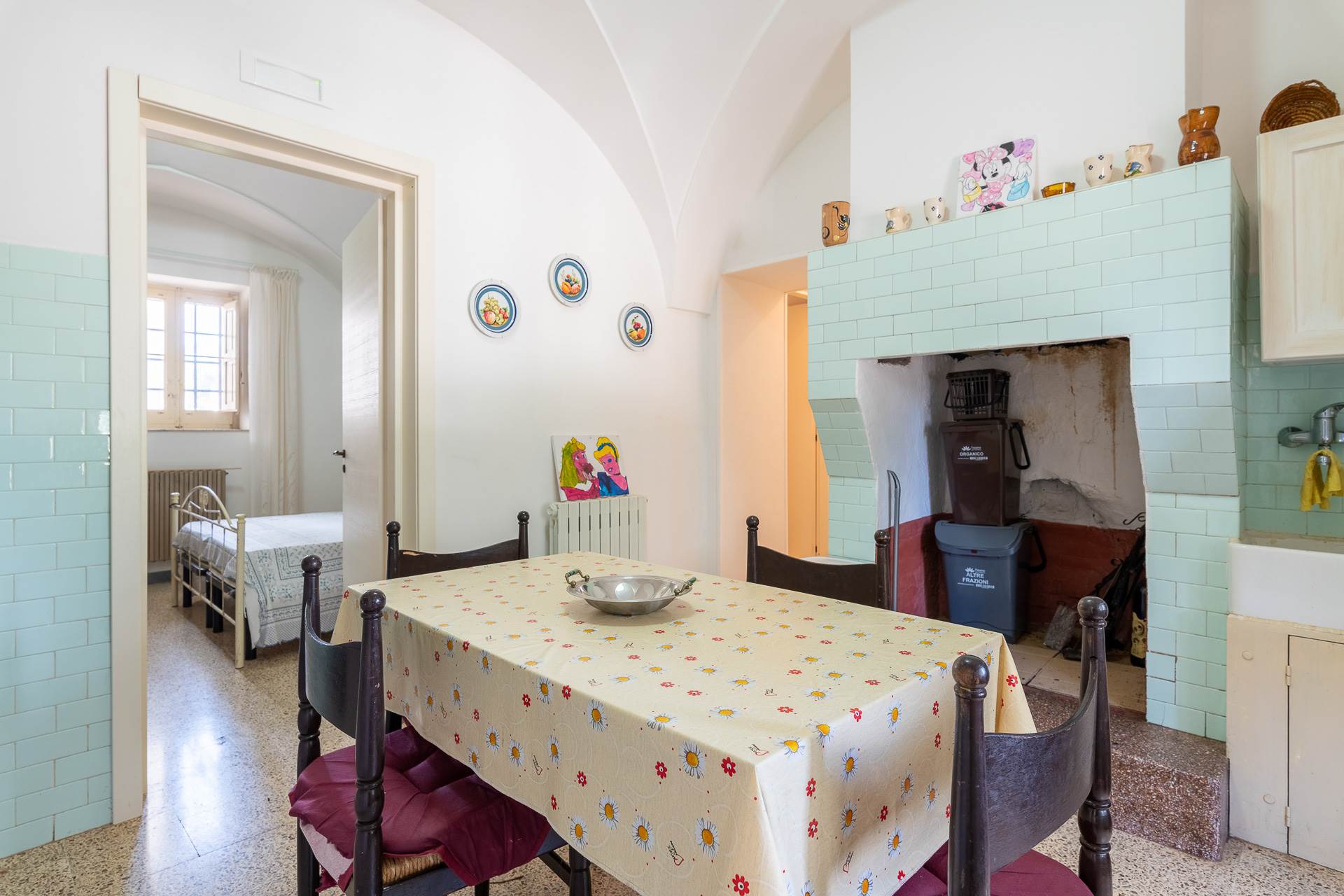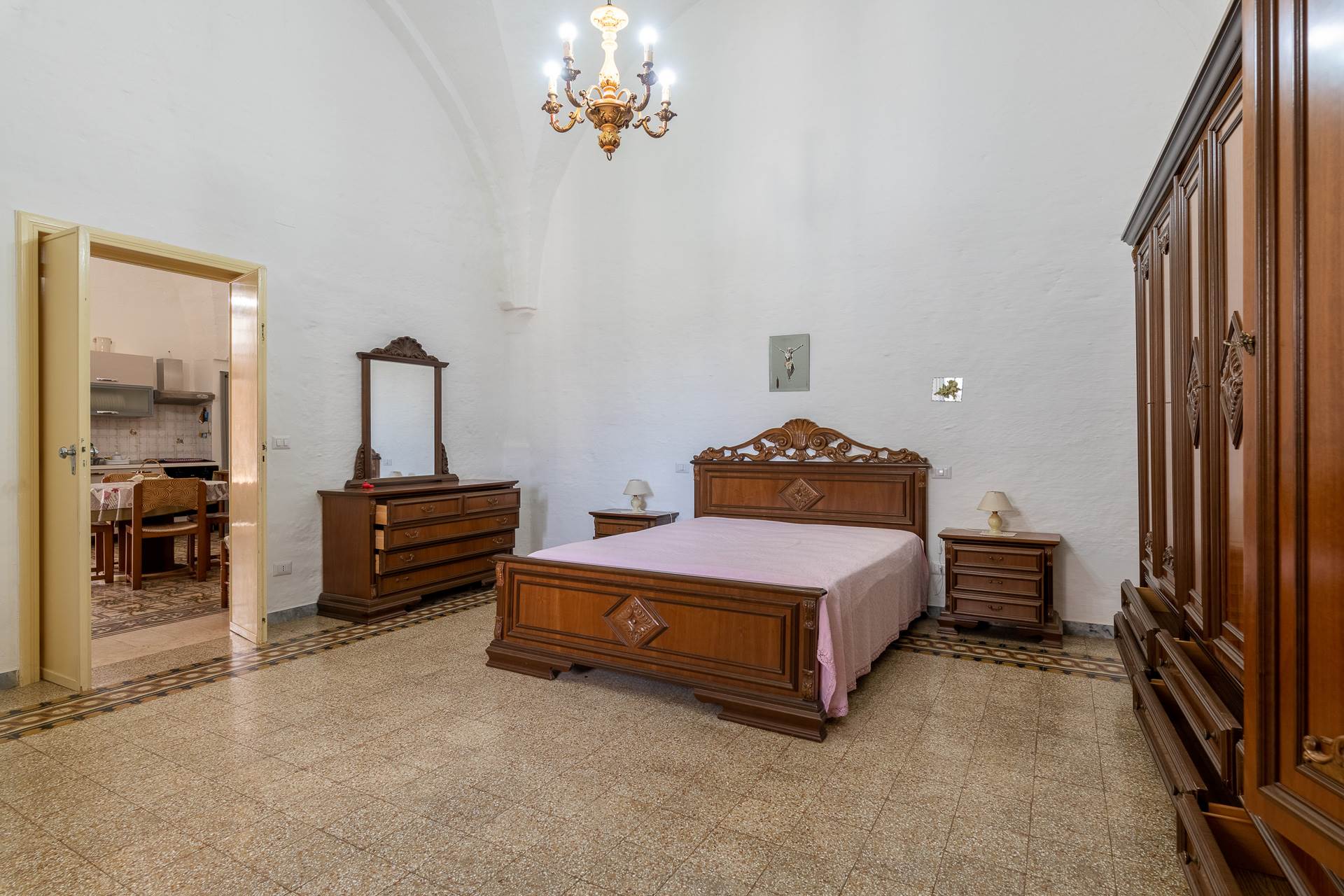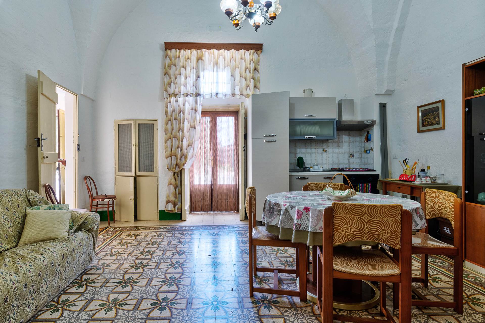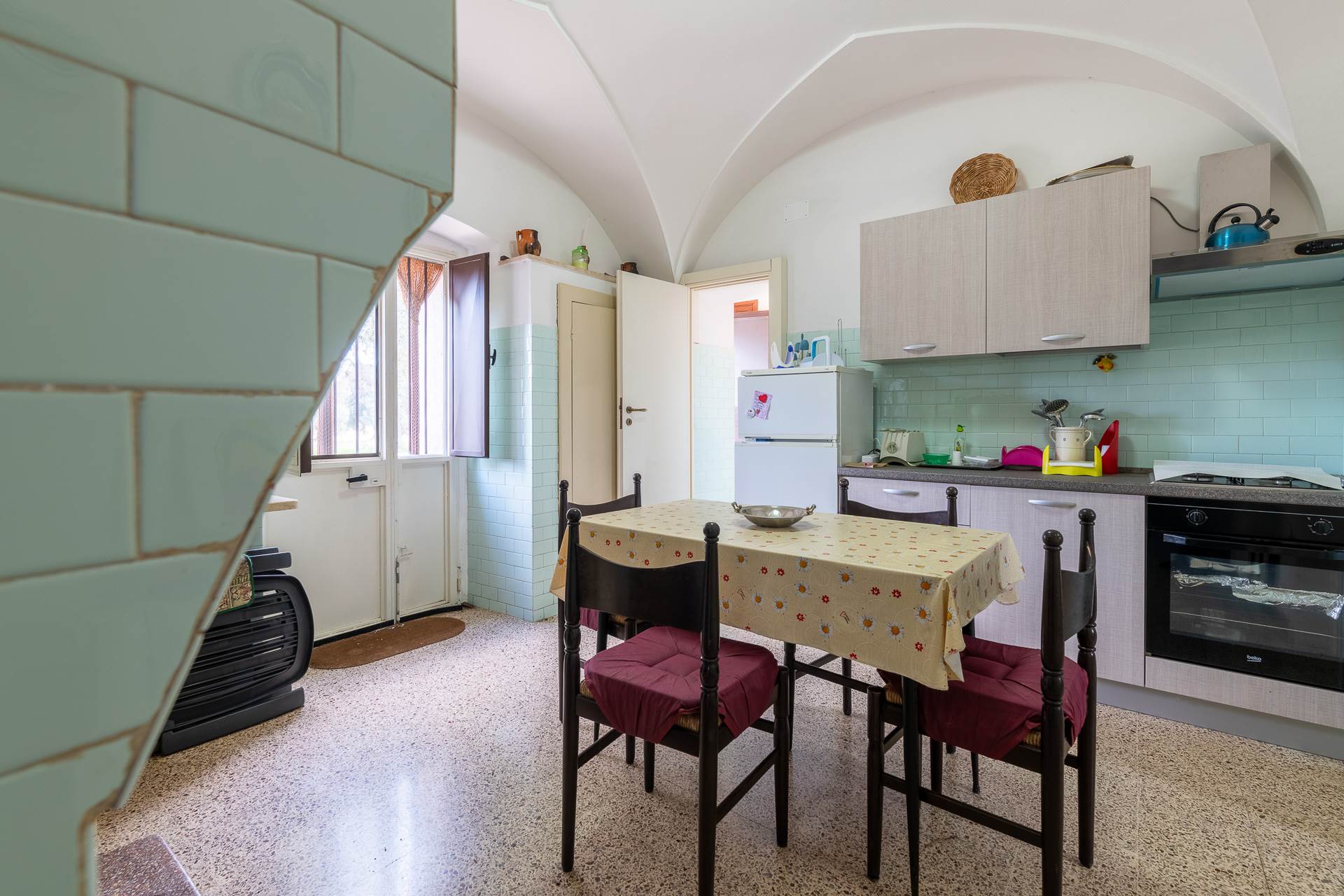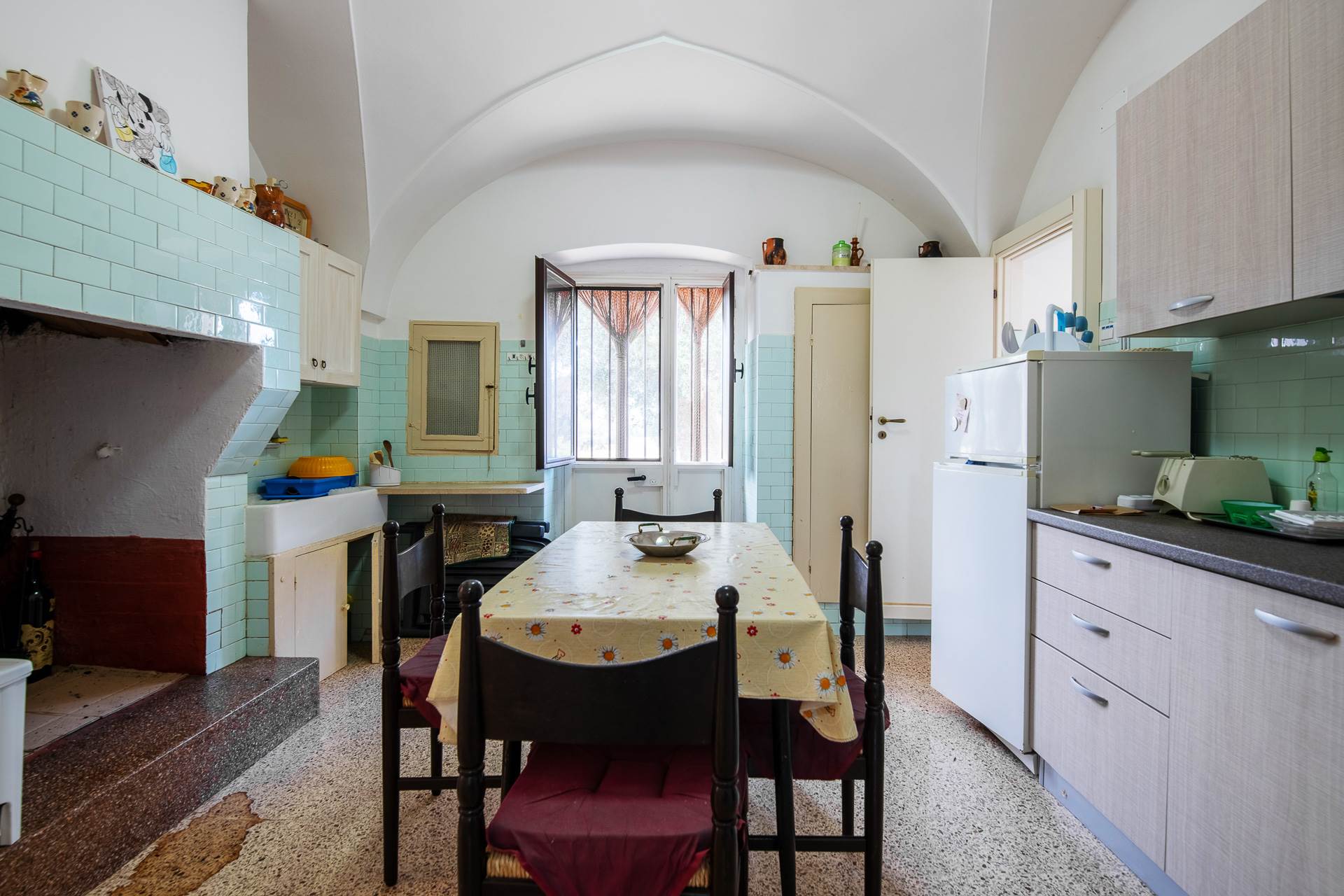 La Masseria ha quasi tutti gli ambienti interni con volte a stella o a padiglione e conserva i pavimenti originali.
