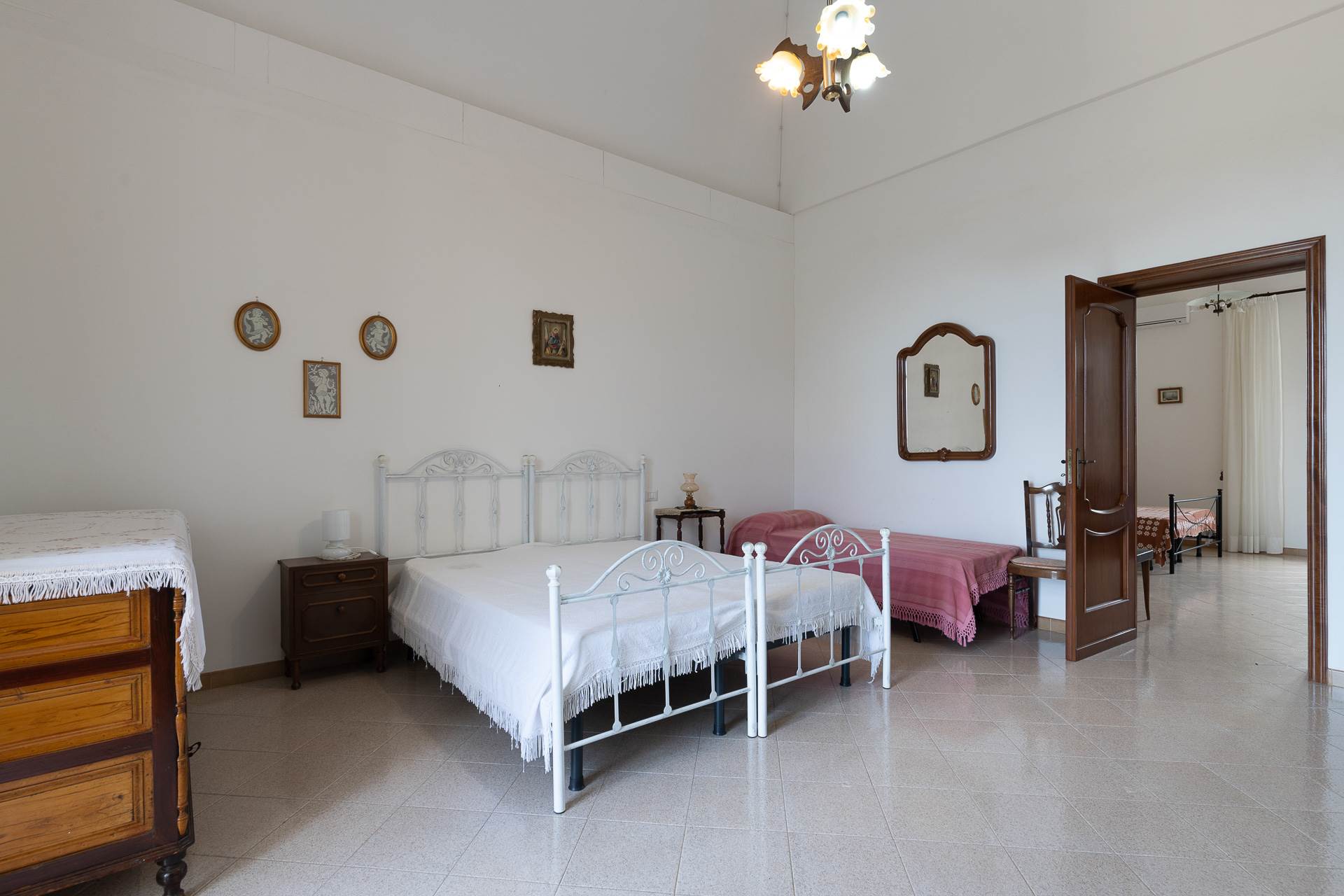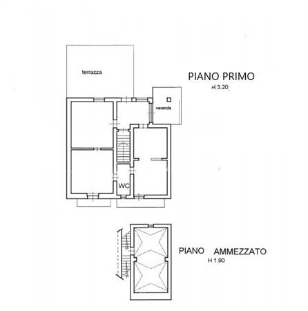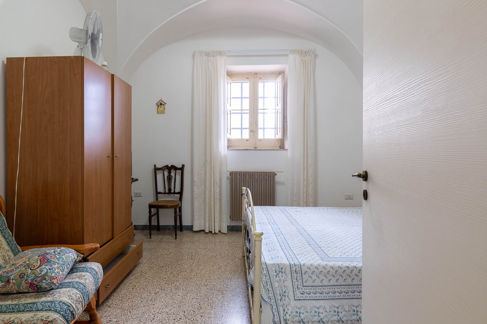 Al piano superiore, ampliato negli anni '70, trova spazio un luminoso ingresso dal quale si accede alla zona notte, composta da due grandi camere da letto, con volte a stella, e da un bagno. Sempre dall'ingresso si accede al soggiorno cucina con camino, terrazza e balcone.