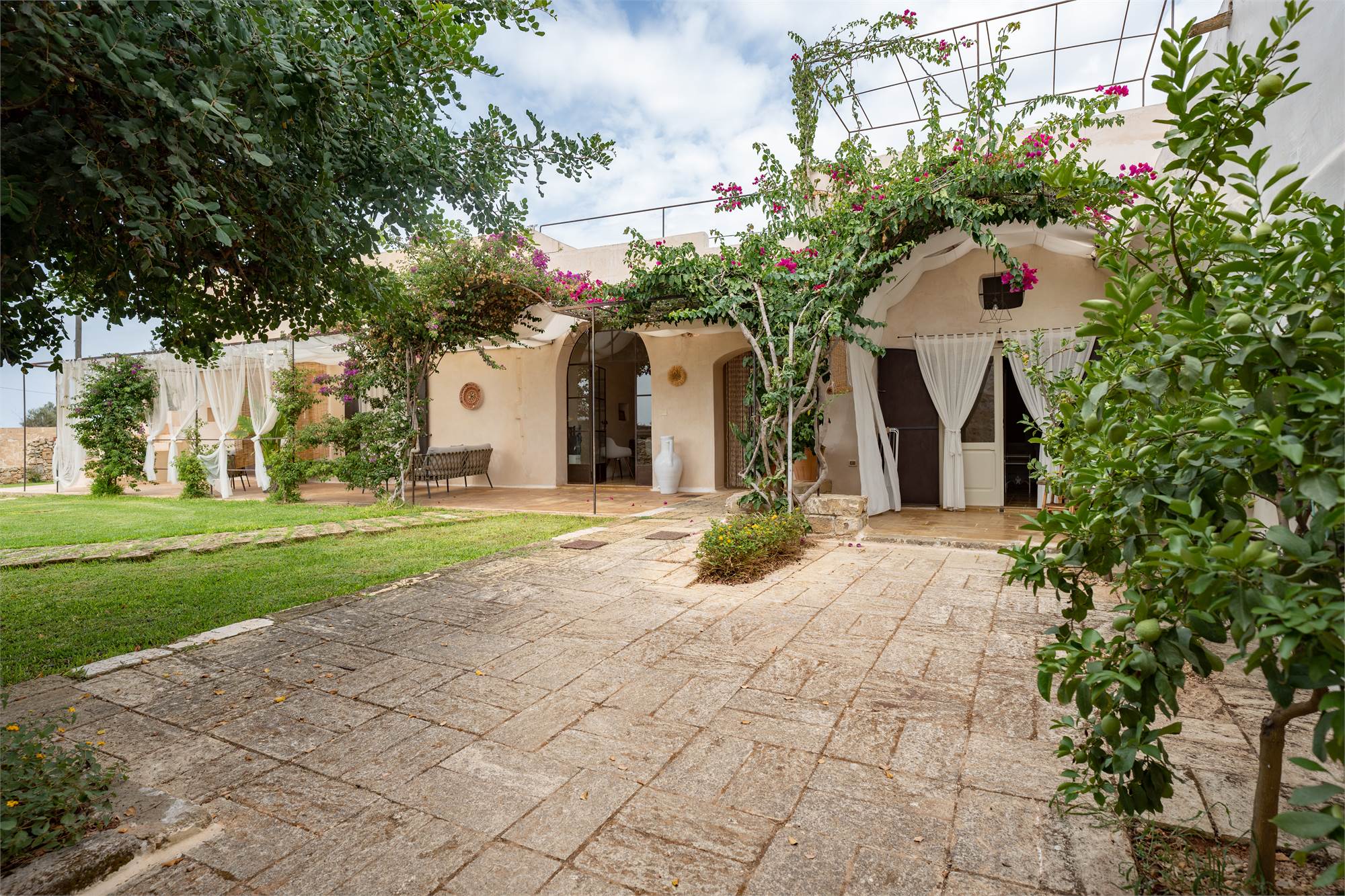 Nel cuore della suggestiva campagna salentina si erge questa incantevole masseria, una dimora di 456 metri quadrati che fonde il fascino dell'antico con il lusso moderno.