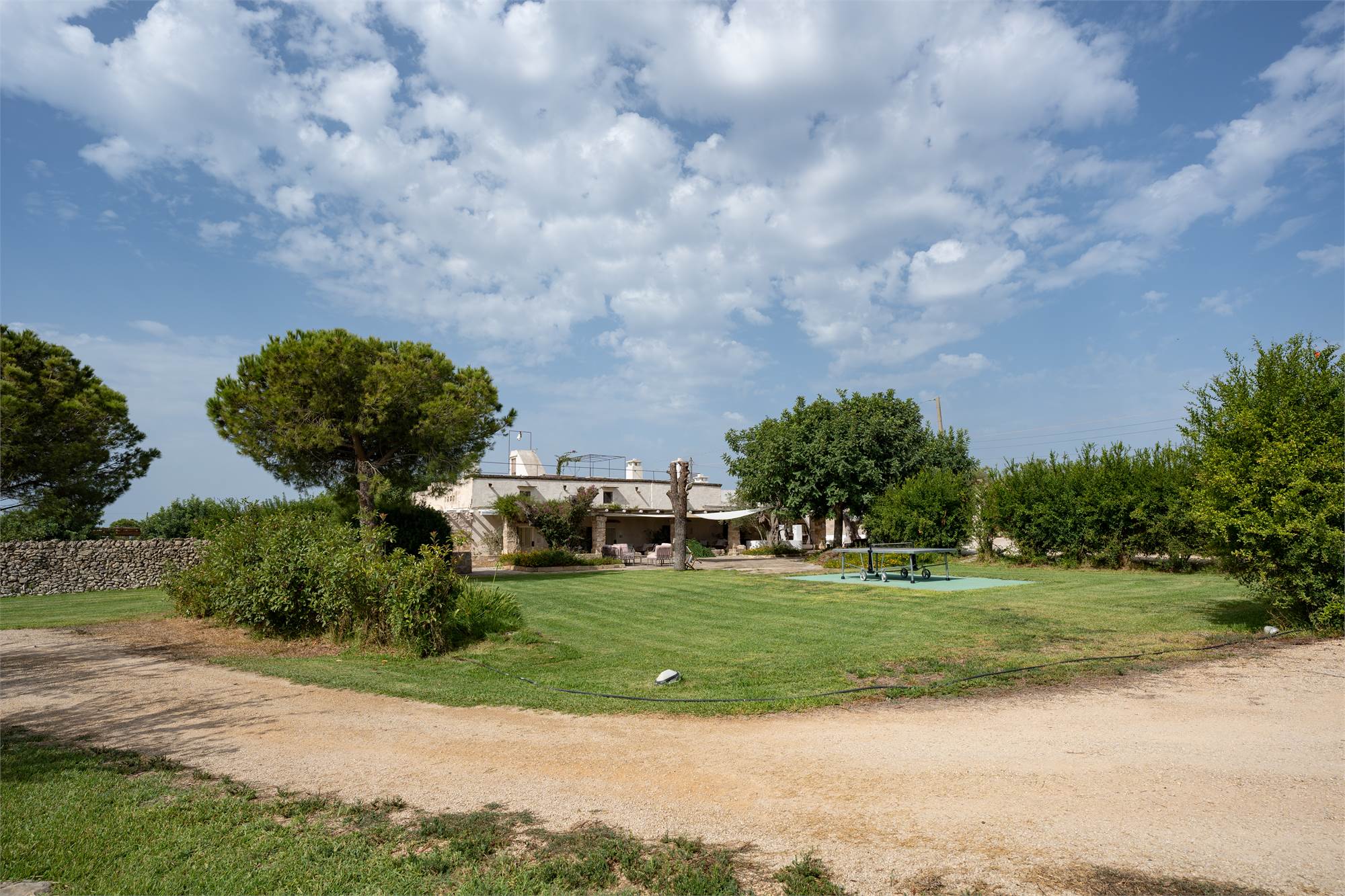 Immersa in un terreno rigoglioso di 5 ettari, la proprietà vanta uliveti, vigneti di negroamaro, un frutteto variegato, un limoneto, alberi di noce, un piccolo orto e un maestoso bosco con querce secolari. Questo connubio di natura e agricoltura offre una varietà di prodotti locali e crea un ambiente straordinario.