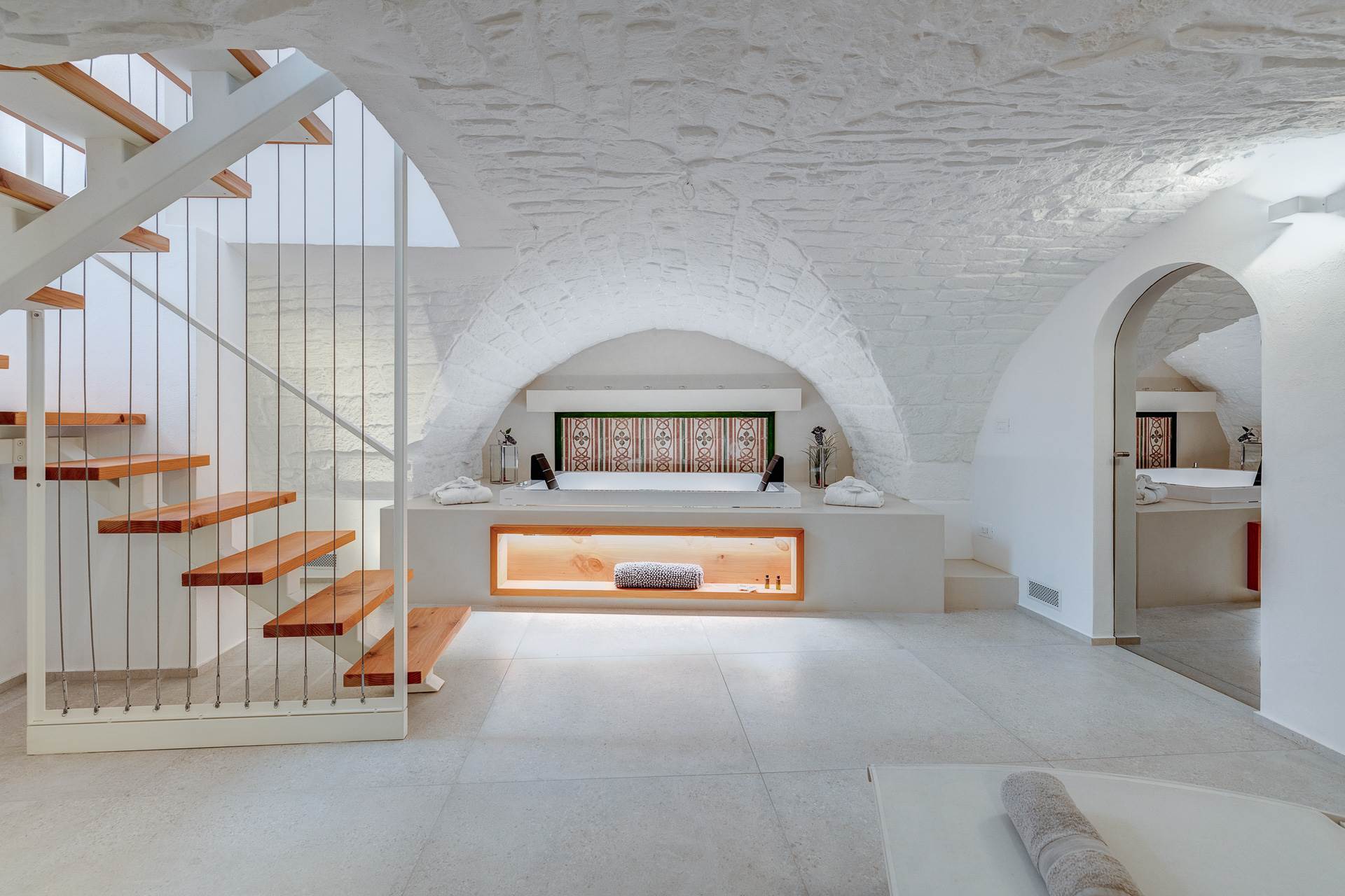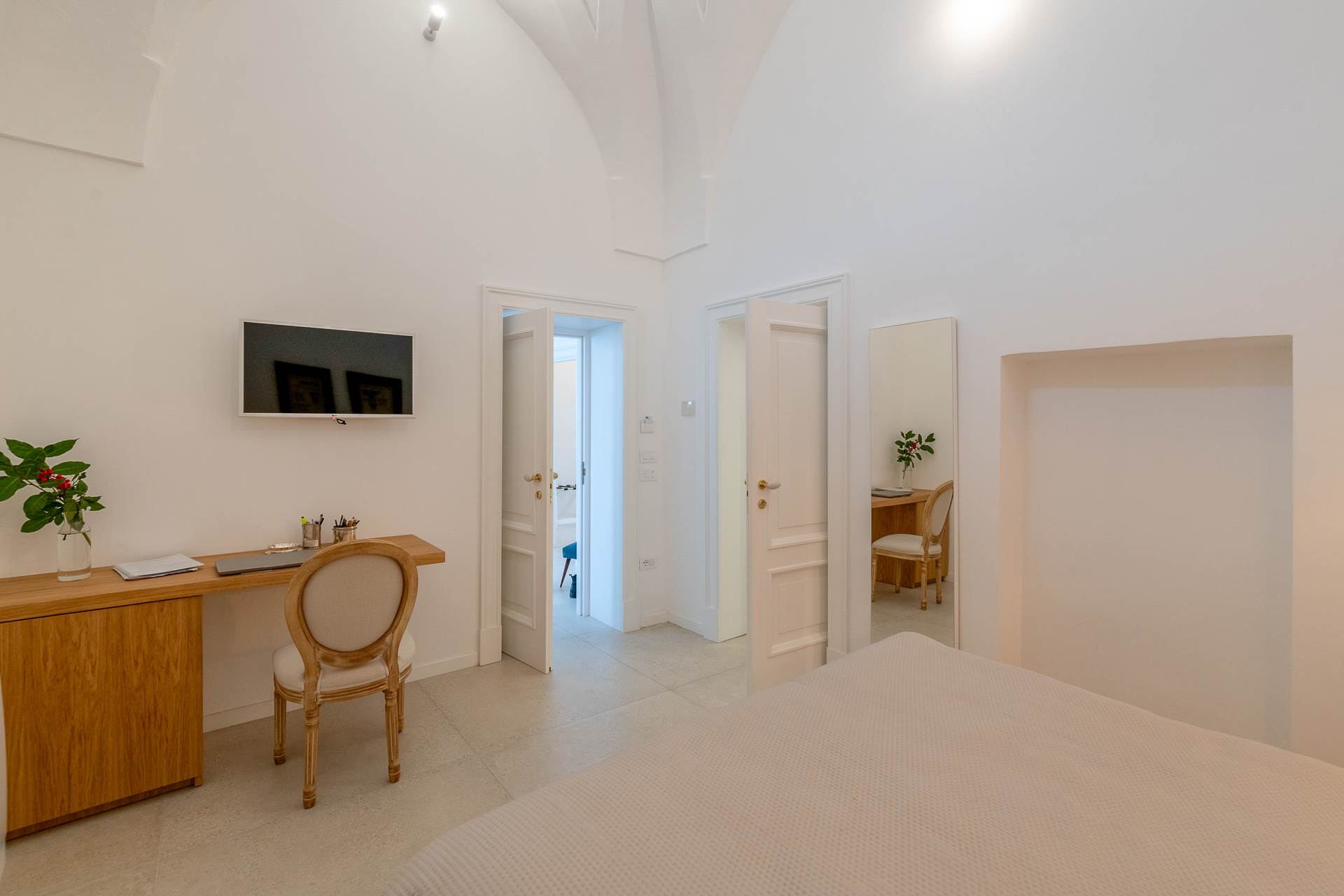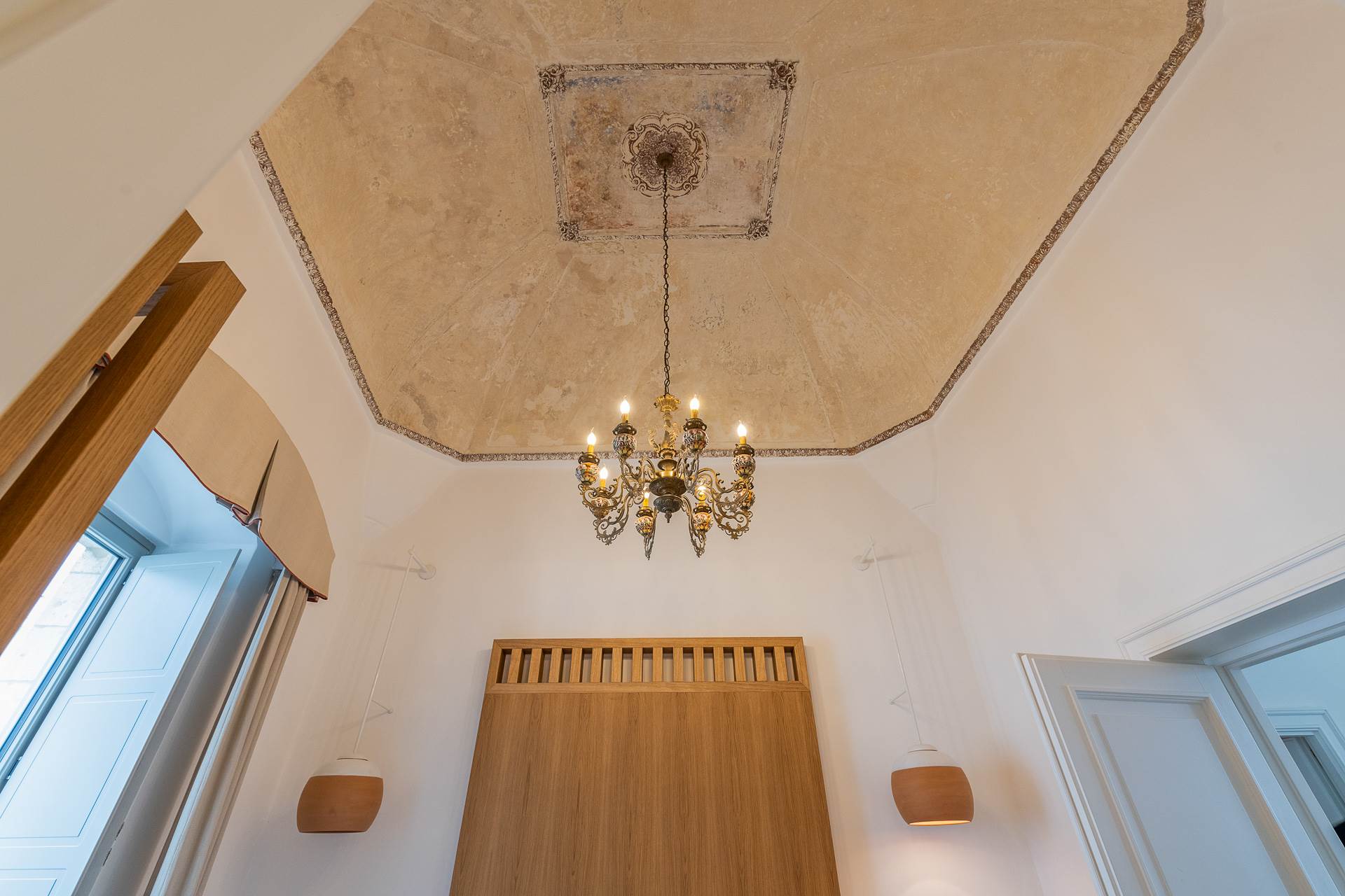 Una volta varcato il primo ingresso indipendente a piano terra, si accede a un ampio openspace con magnifici soffitti a volta e stella, arricchito da una cucina completamente attrezzata e un bagno, creando un ambiente accogliente e raffinato.