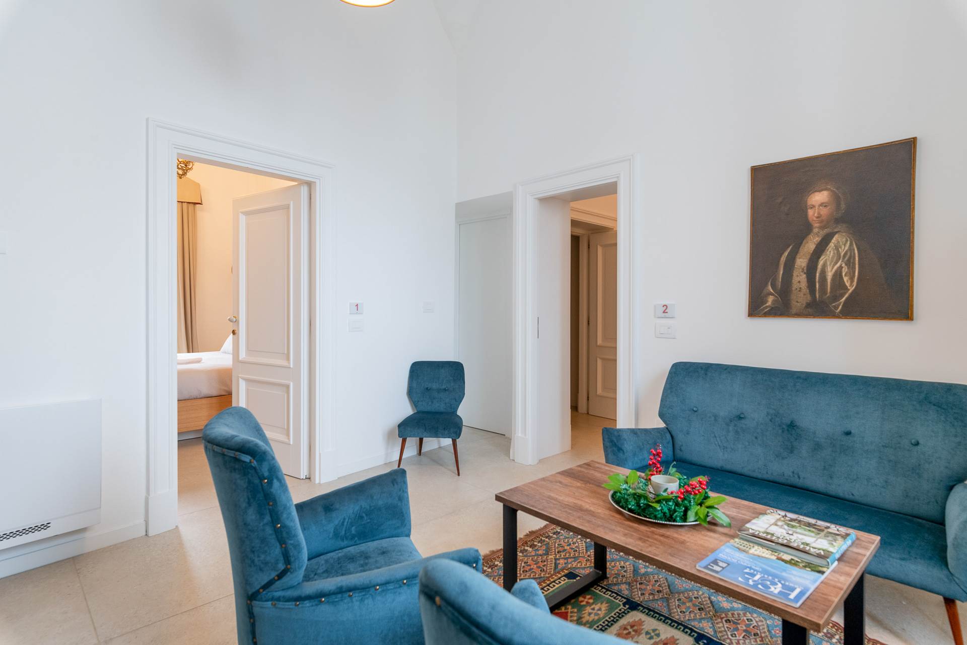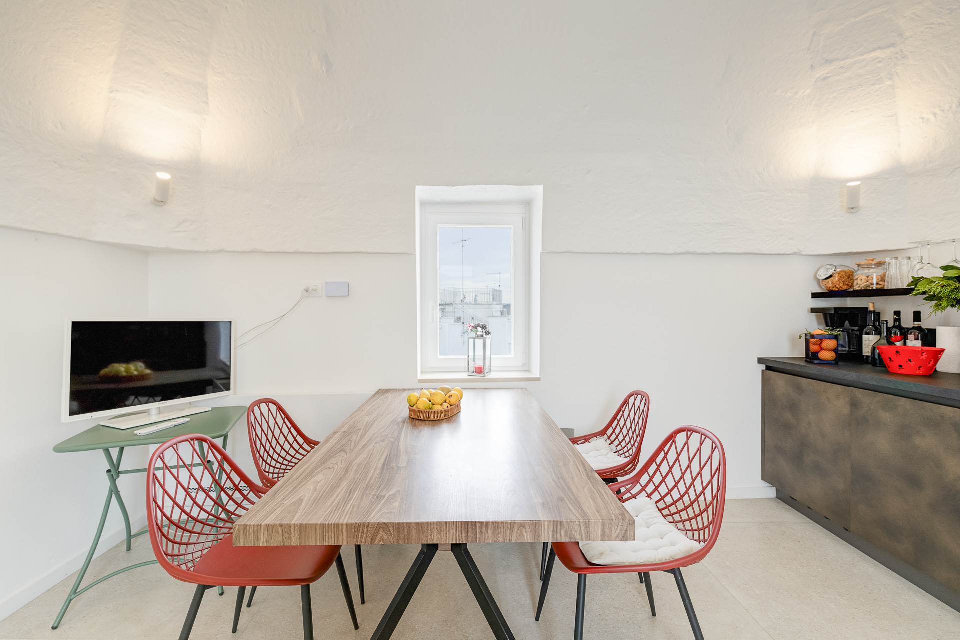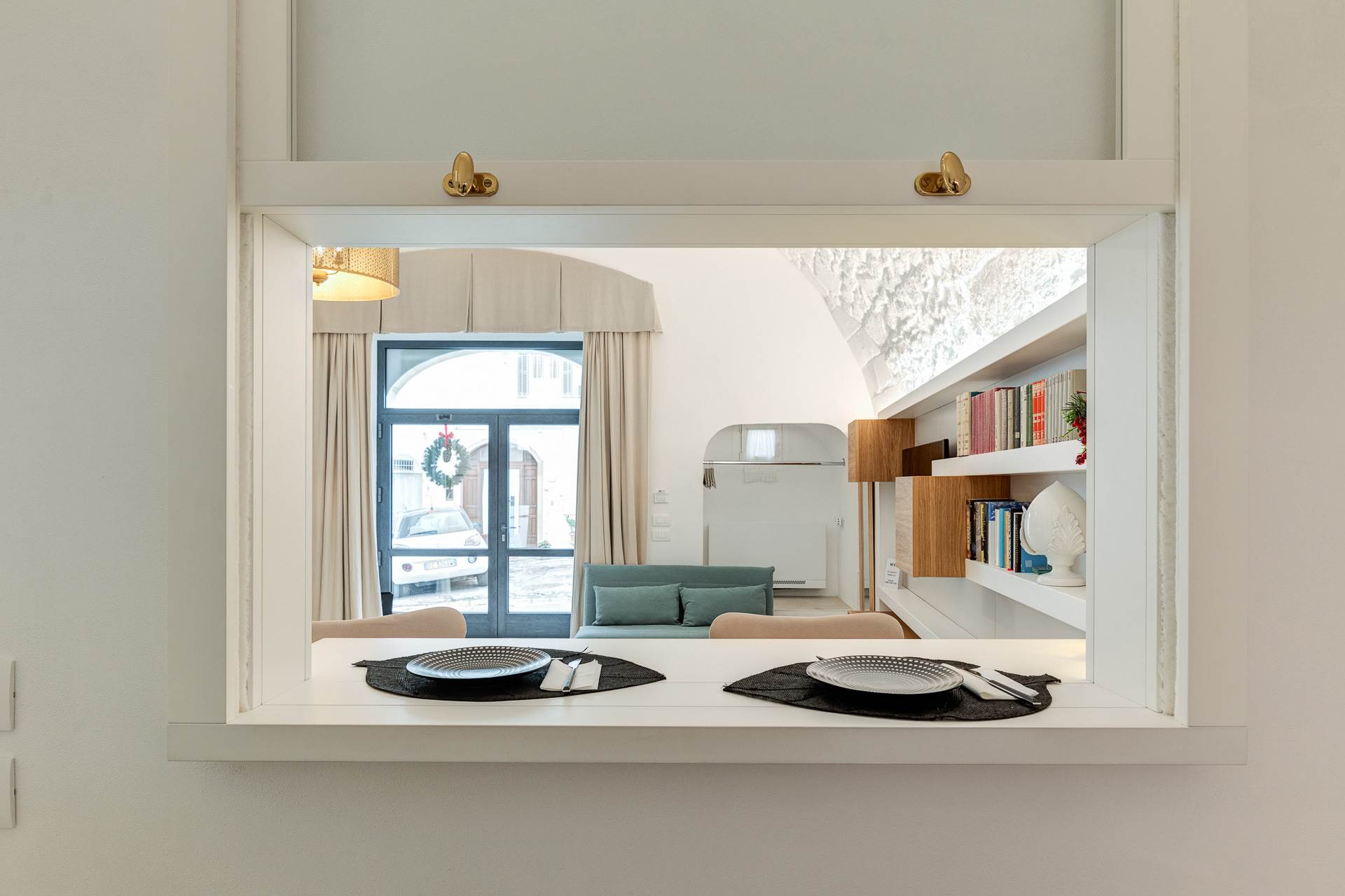 Una volta varcato il primo ingresso indipendente a piano terra, si accede a un ampio openspace con magnifici soffitti a volta e stella, arricchito da una cucina completamente attrezzata e un bagno, creando un ambiente accogliente e raffinato.