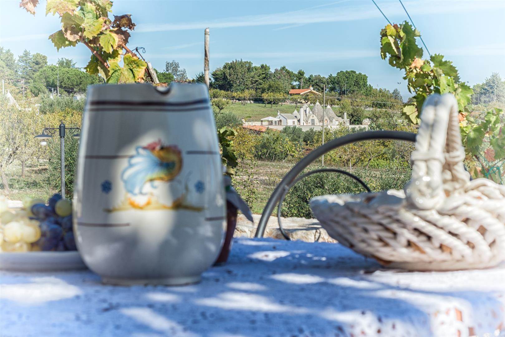 Splendidi trulli immersi nel pieno della Valle d'Itria, precisamente nelle campagne di Martina Franca, un paesaggio magnifico dove passare la più bella vacanza estiva.Nel bel mezzo della Valle d'Itria, precisamente nelle campagne di Martina Franca in provincia di Taranto, si trovano questi splendidi trulli con piscina. Appena arrivati si potrà ammirare lo splendido paesaggio, alberi di ulivi secolari tutto intorno alla proprietà e trulli sparsi per tutta la valle verdeggiante. Un paesaggio da mozzare il fiato, una pace dove vivere nel pieno relax le proprie vacanze estive, alla ricerca delle bellezze che questa meravigliosa terra può offrire.