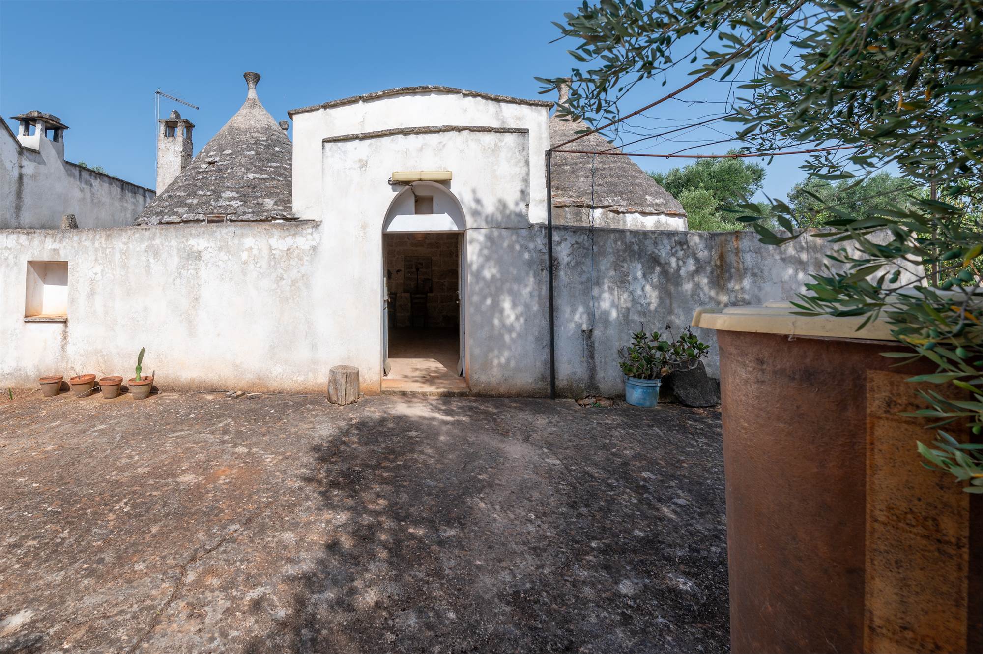 Questo affascinante trullo a 4 coni è affiancato da una lamia e circondato da un terreno di circa 2 ettari, arricchito da ulivi secolari e alberi da frutto, che donano un'atmosfera unica e rilassante.