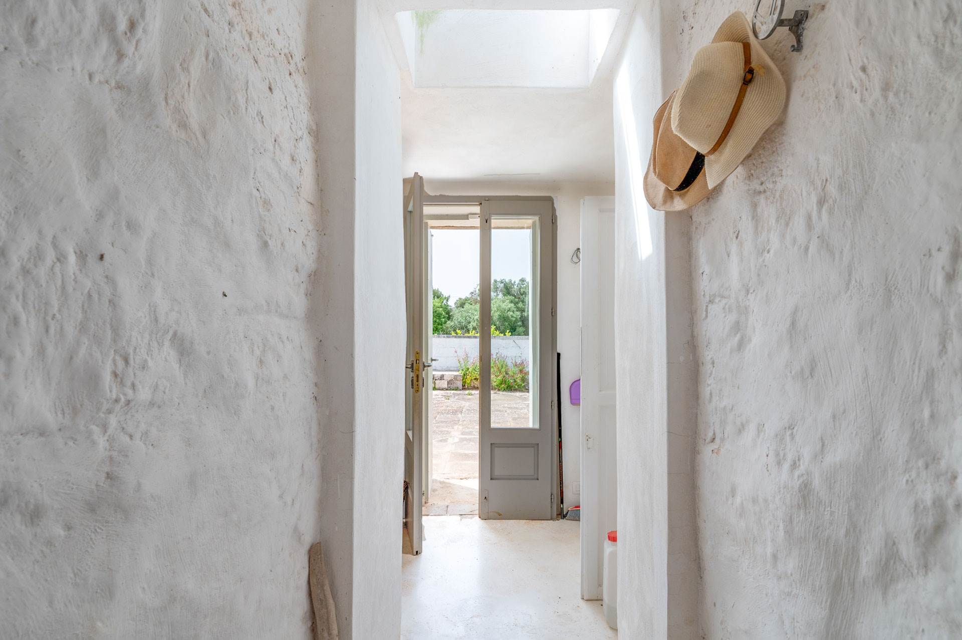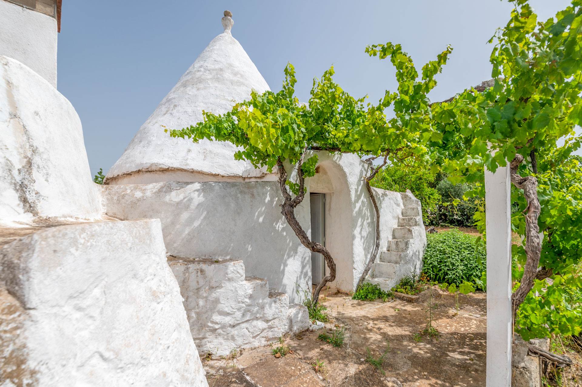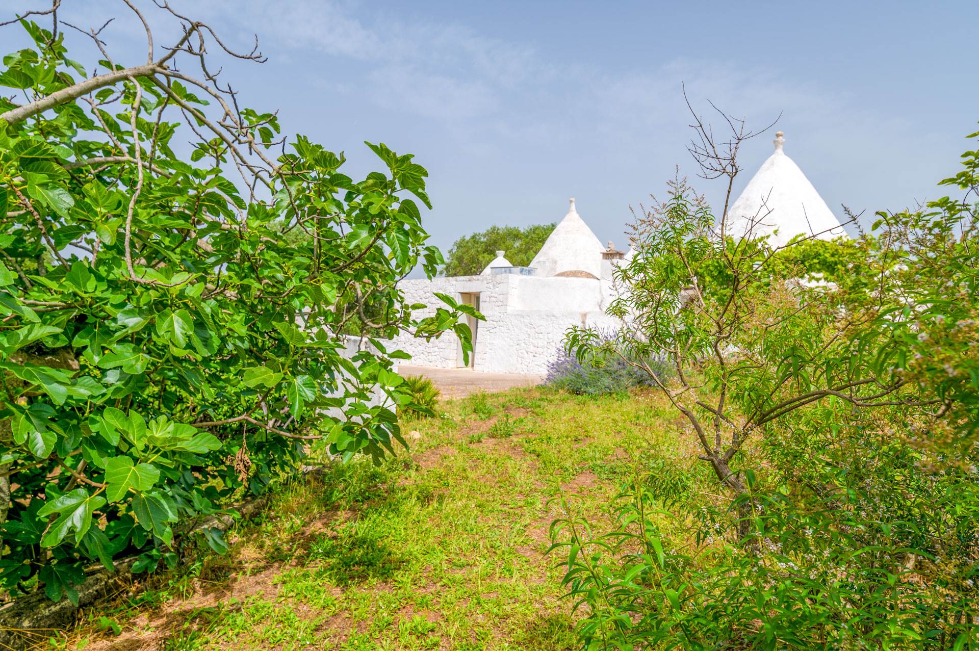 Il paesaggio che circonda la proprietà offre i caratteristici scorci della Valle d’Itria, con ampie viste su campi seminati o fioriti, a seconda della stagione, interrotti da ulivi, macchia mediterranea e muretti a secco.