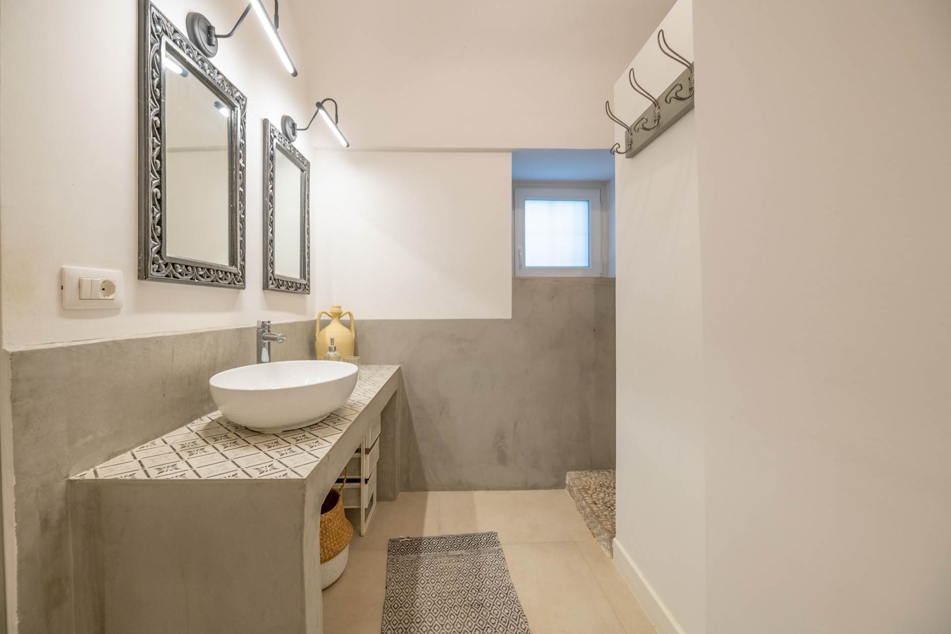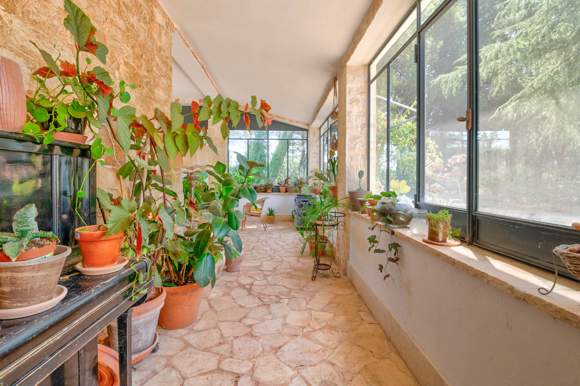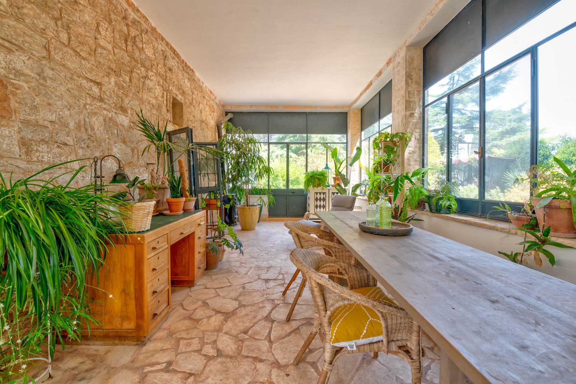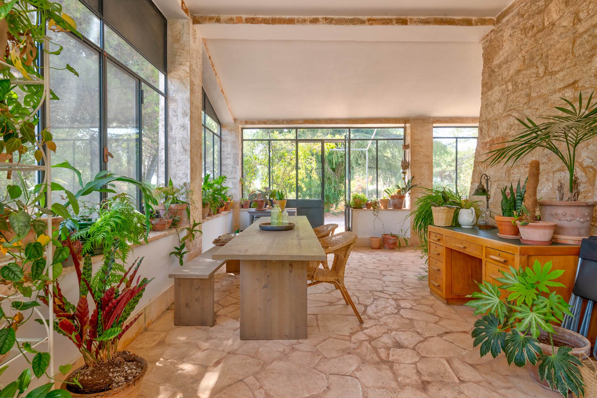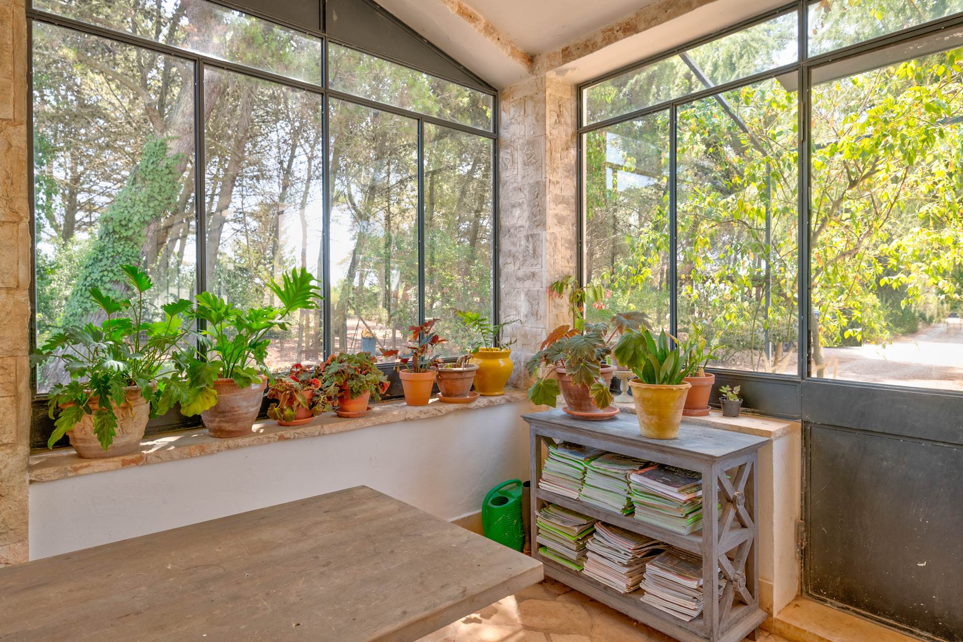 L’edificio è un antico casolare in pietra, splendidamente ristrutturato con materiali di pregio. Ha una superficie di circa 120 mq e ospita un’ampia zona living con camino, una moderna e luminosa cucina, una zona pranzo, due camere da letto, una delle quali con camino, due bagni; uno studio che può essere utilizzato come terza camera da letto. Dalla zona pranzo e dalla camera da letto con camino si accede al meraviglioso portico che ospita un giardino d'inverno.