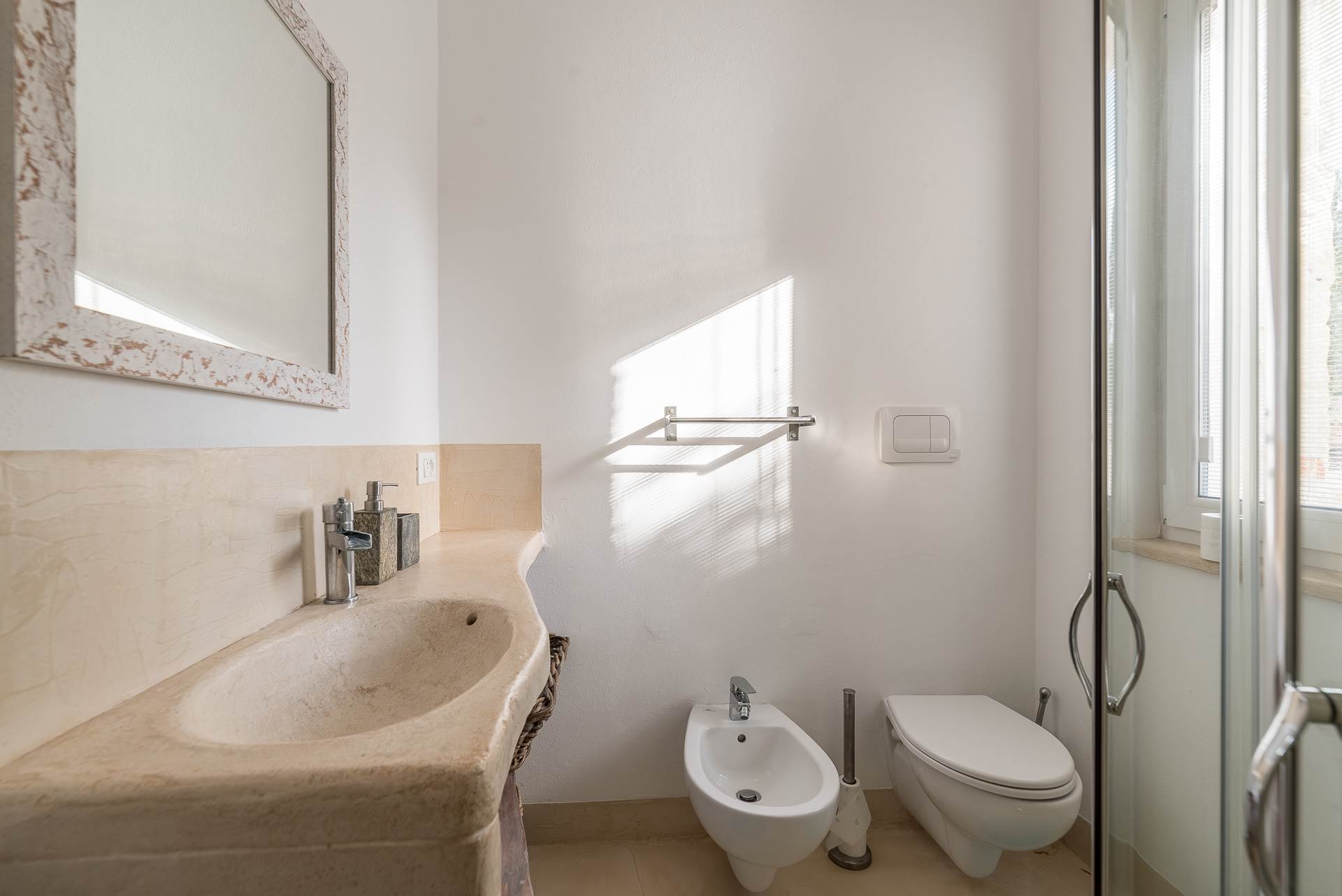 La proprietà ha una superficie coperta di 220 mq ed è circondata da circa 2 ettari di oliveto secolare.