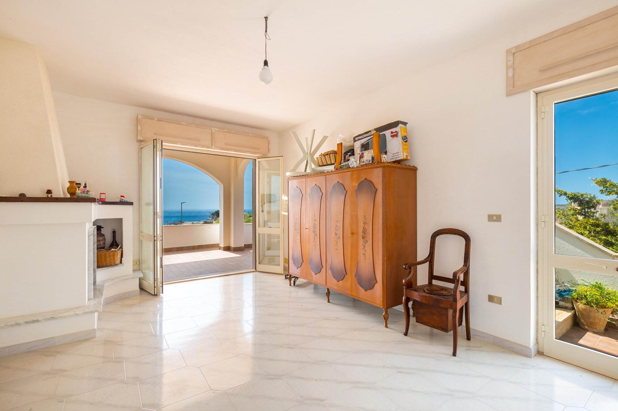 Al piano terra, la prima unità abitativa dispone di un ampio soggiorno con camino e zona pranzo, una cucina, un ripostiglio, una grande camera da letto con bagno privato, altre due camere da letto e un bagno. Mentre al primo piano, la seconda unità è composta da un ampio soggiorno con camino e zona pranzo, una cucina, una grande camera da letto con bagno privato, altre due camere da letto e un bagno. Entrambi i soggiorni si affacciano su un terrazzo con una vista mozzafiato sul mare.