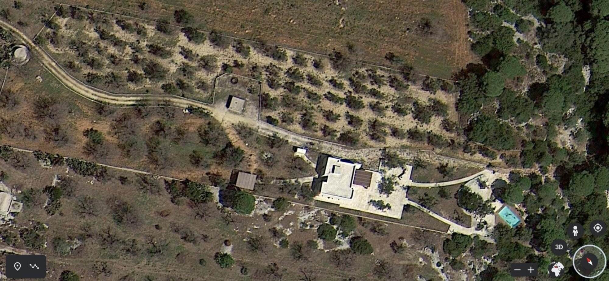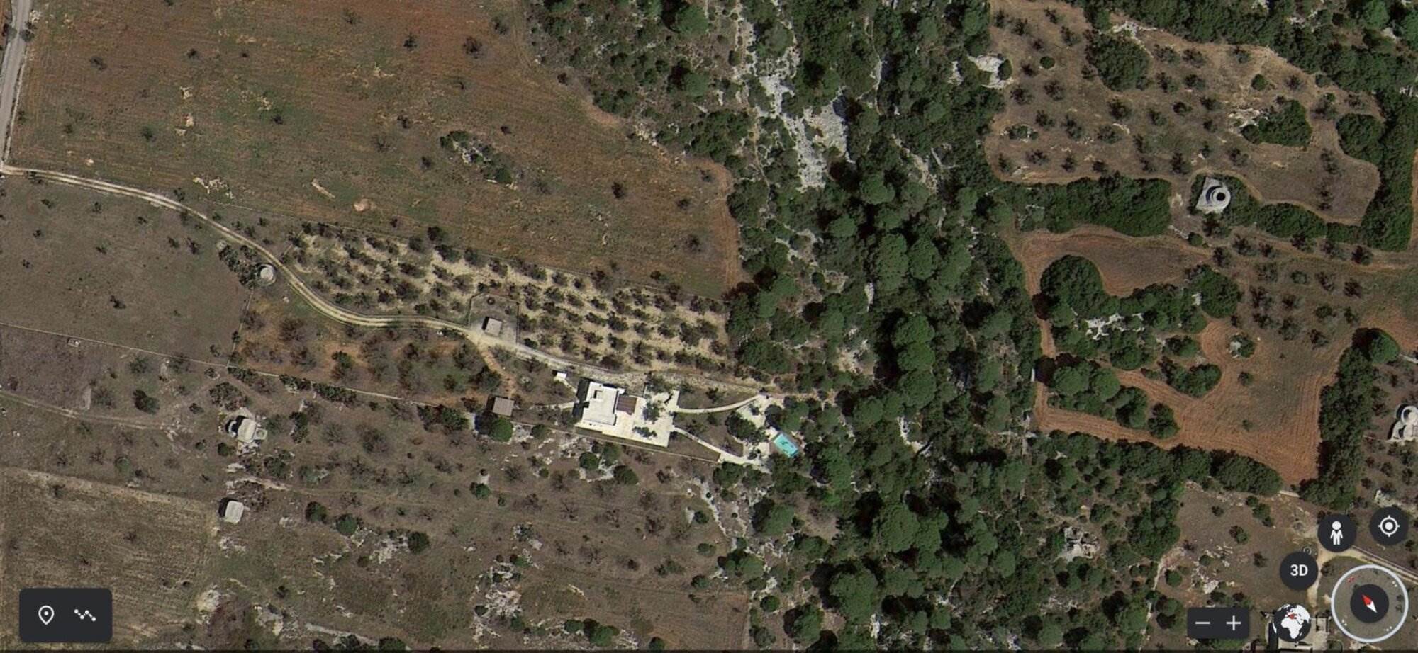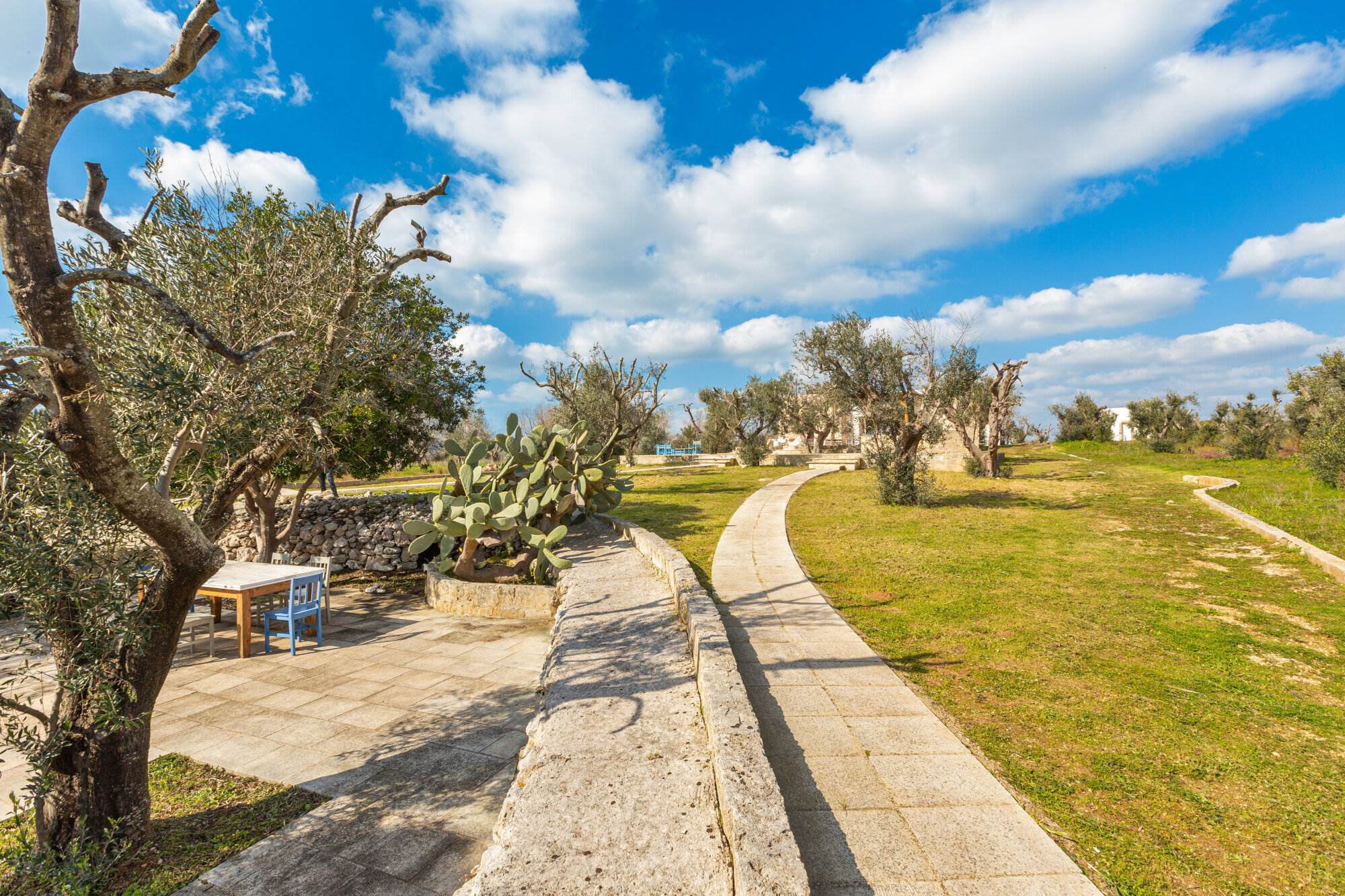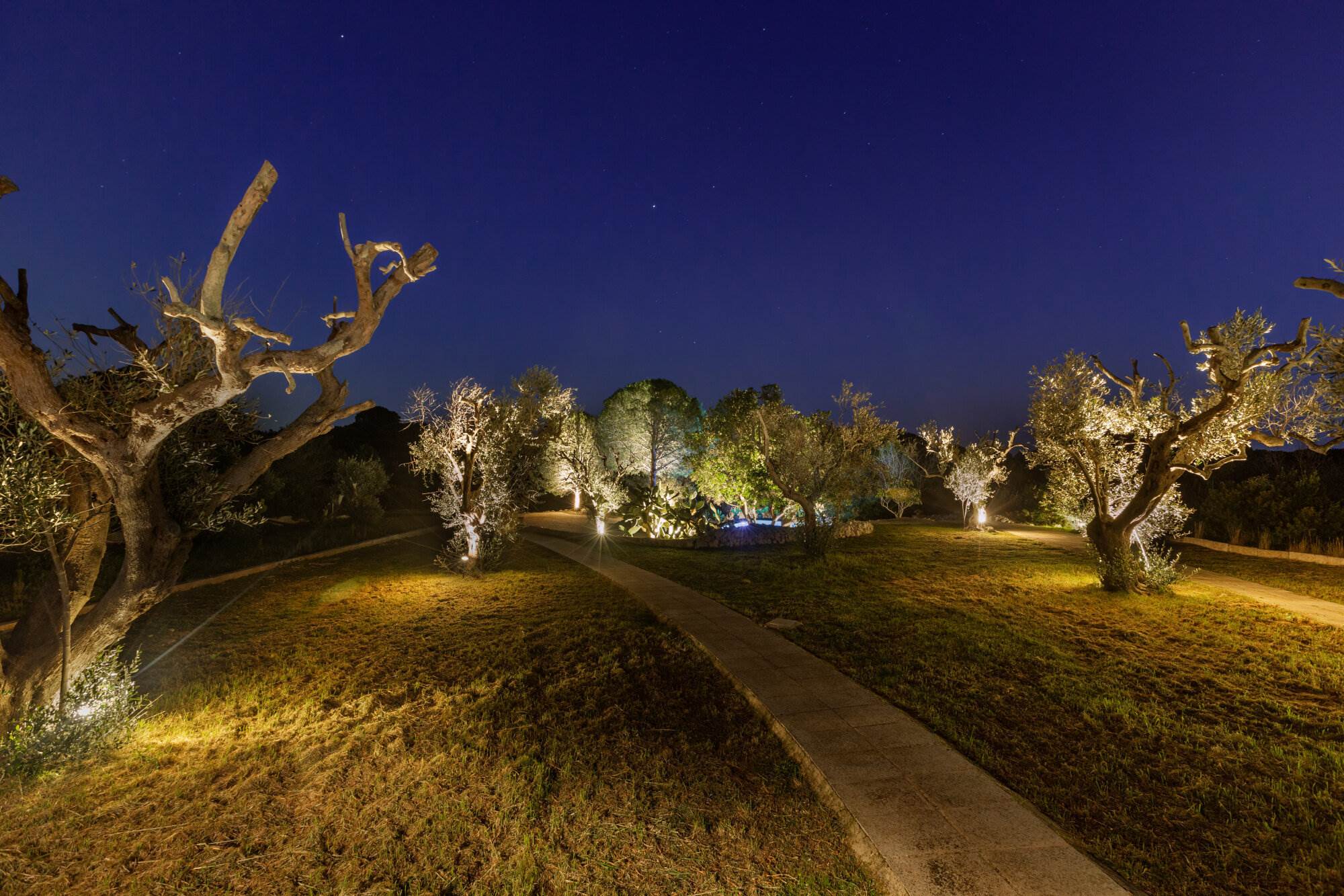 La villa si trova all'interno di un vasto uliveto secolare di 10.000 mq, arricchito da alberi di pino, mirto, nocciolo, fichi, rosmarino, mandorli, carrubi, querce e fichi d'india. Un orto coltivato produce generosamente delizie ogni anno. L'ambiente esterno è curato con la stessa attenzione ai dettagli e alla ricercatezza che caratterizza l'interno della villa.