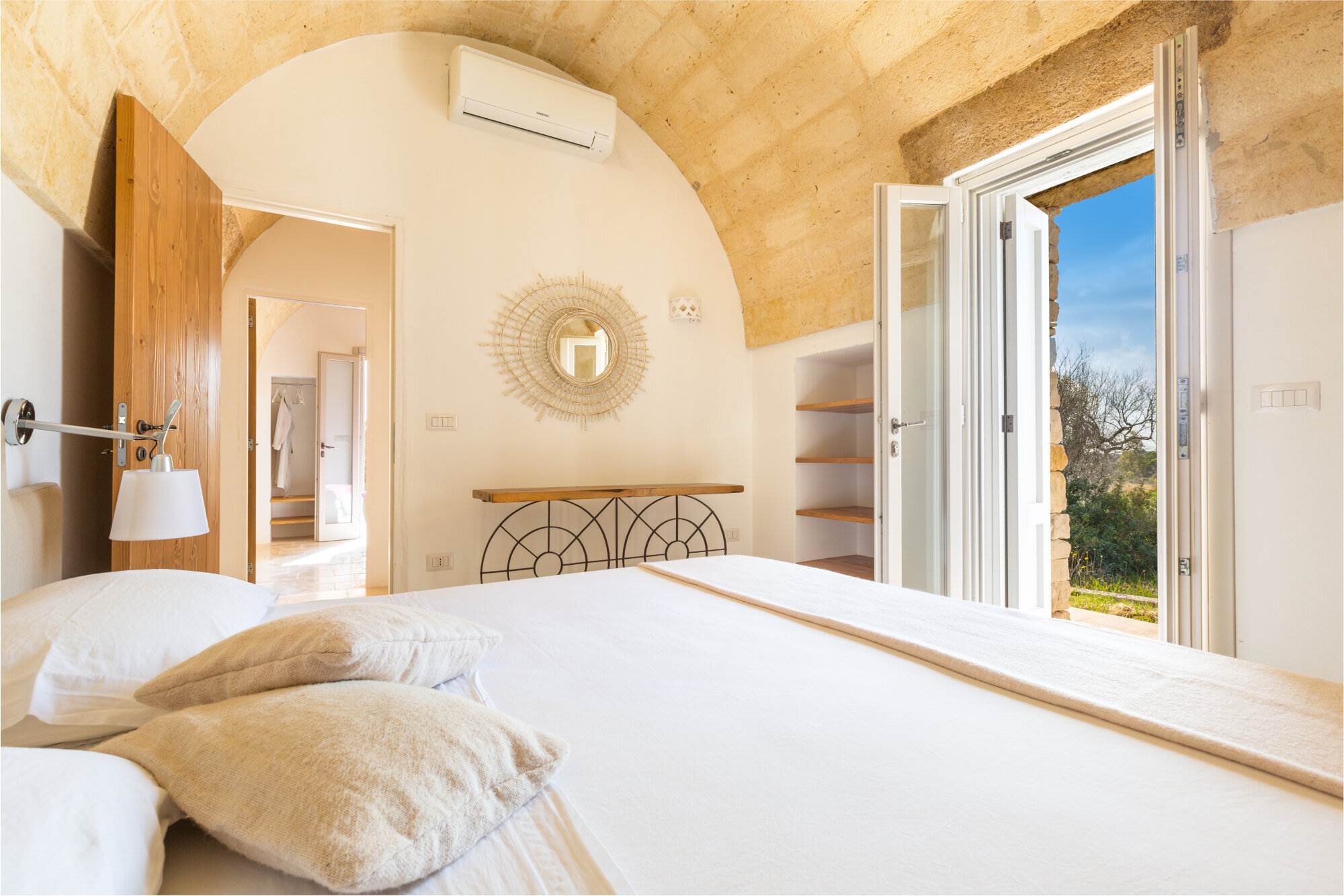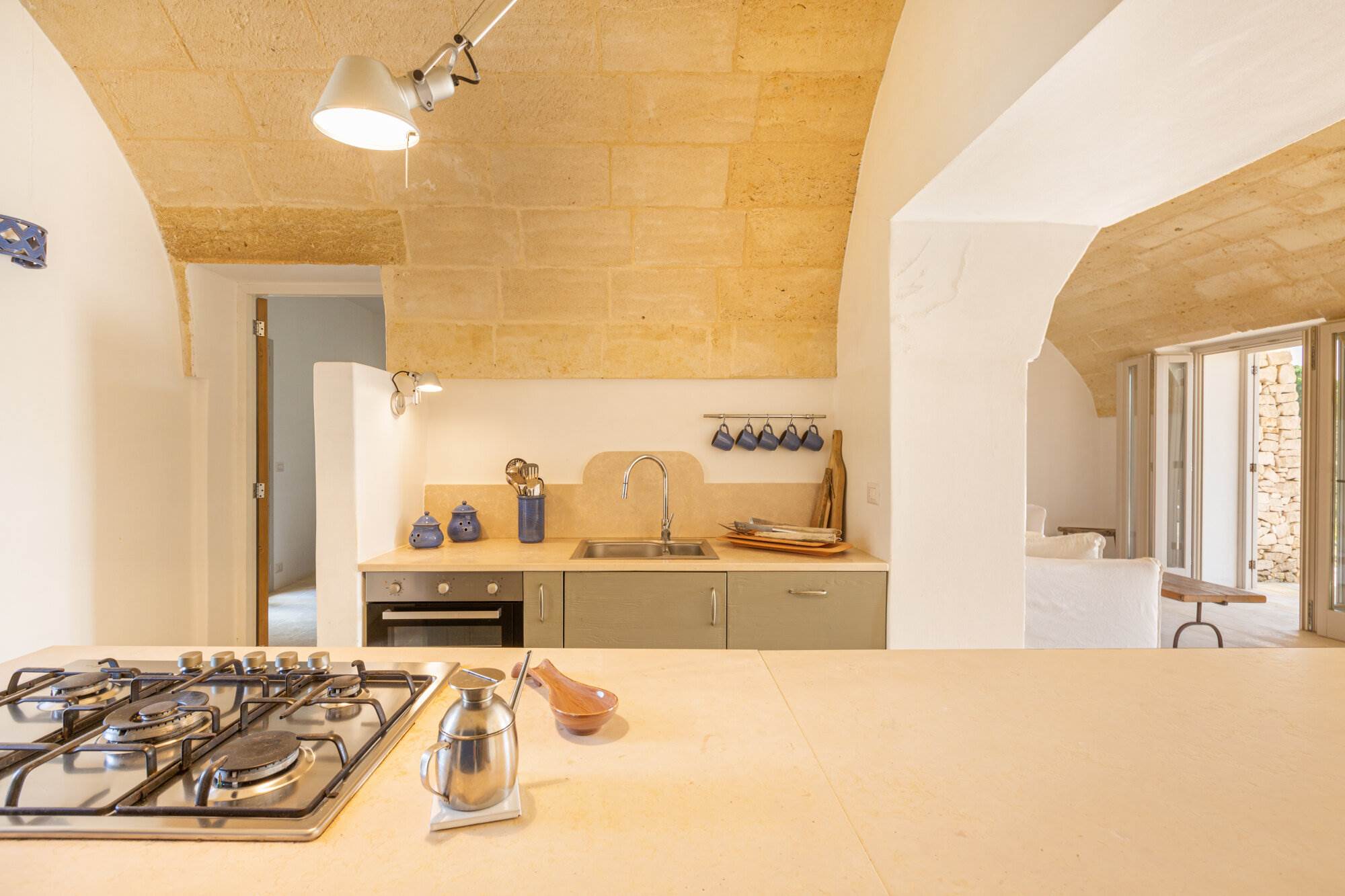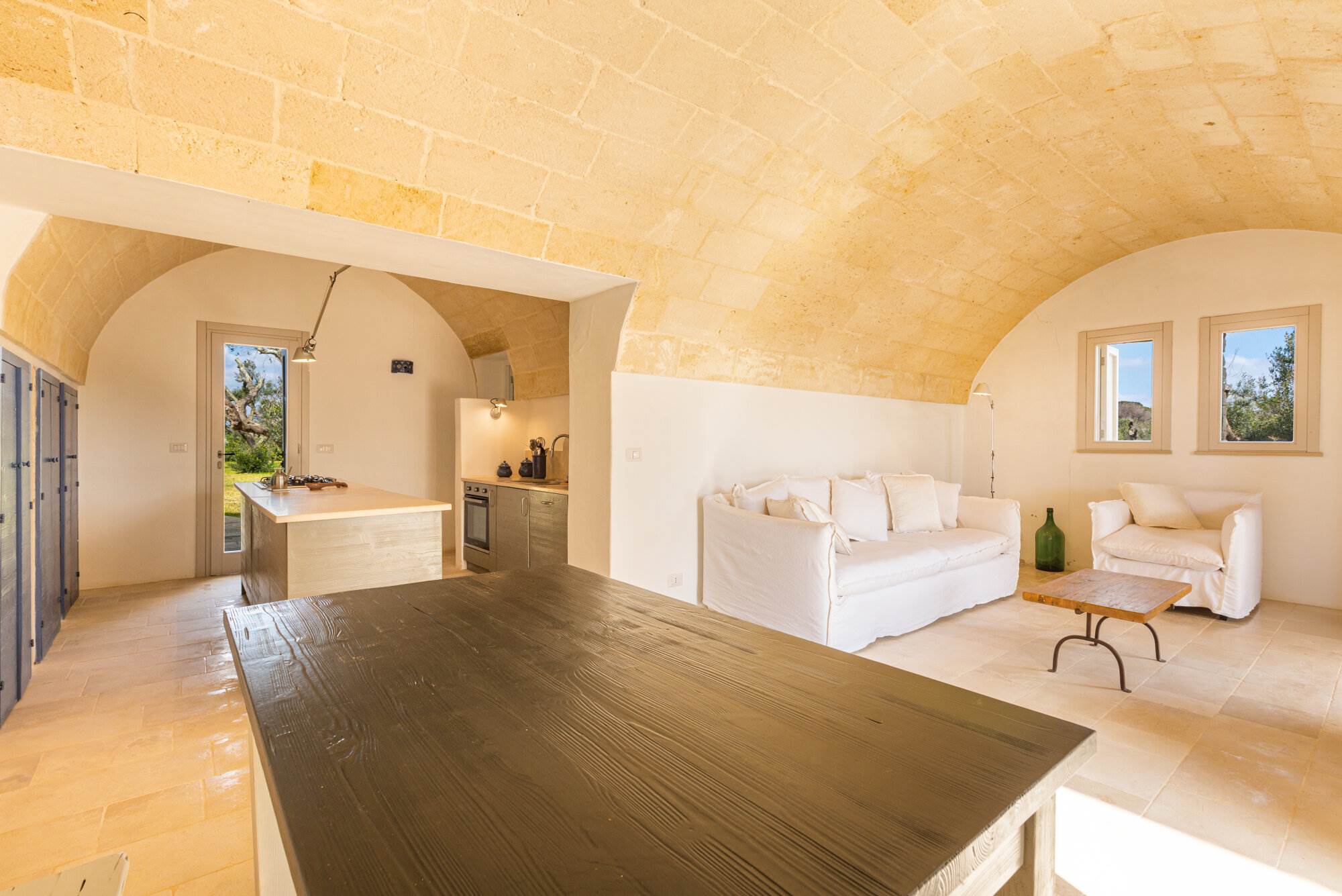 La villa è dotata di finiture di alta qualità, tra cui cocciopesto nei bagni, pavimenti in marmo di Trani, falegnamerie su misura in legno, finestre, porte e persiane artigianali in legno, sommier ignifughi e materassi da 30 cm, illuminazione Artemide.