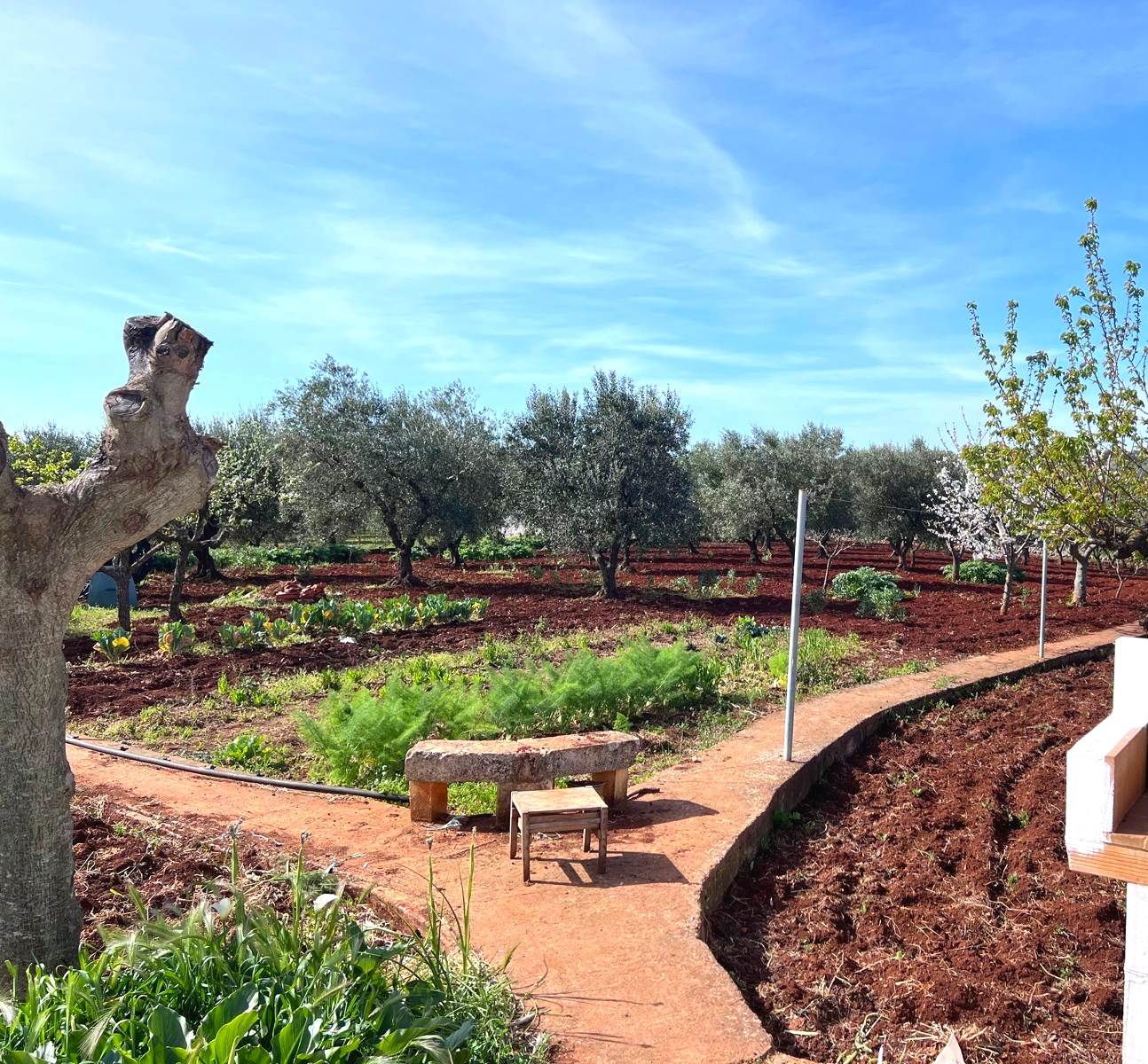 Il terreno circostante, di circa 7000 mq, è curato con attenzione e ospita numerosi alberi d'ulivo e diversi alberi da frutto, creando un'oasi di verde e tranquillità.